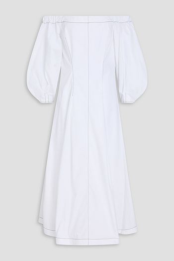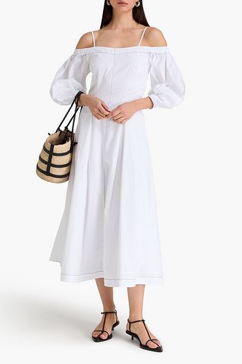 Leila cold-shoulder cotton-poplin midi dress