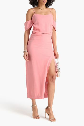 Paulina cold-shoulder draped crepe midi dress