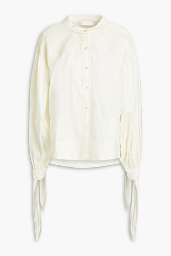 Sonya pintucked cotton-blend poplin blouse