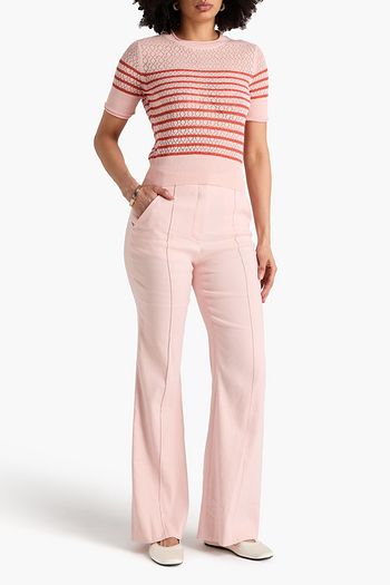 Declan striped pointelle-knit linen-blend top