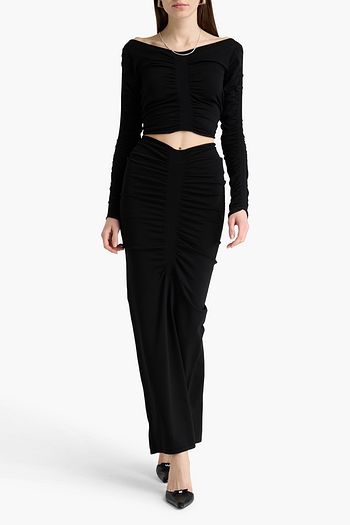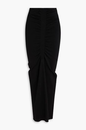 Gathered stretch-knit maxi skirt