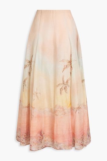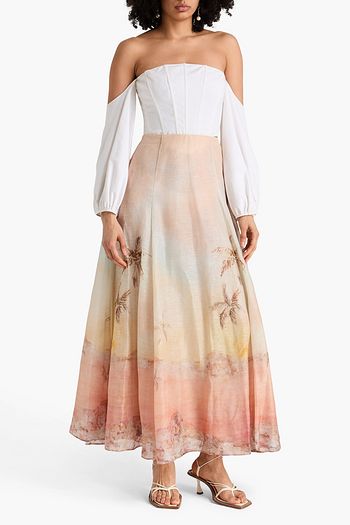 Printed linen and silk-blend maxi skirt
