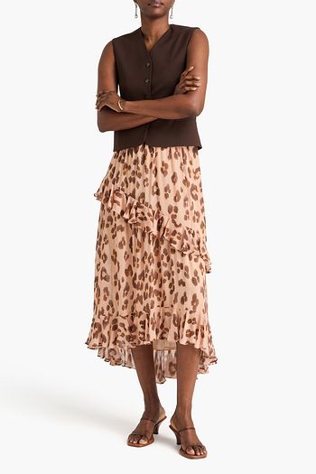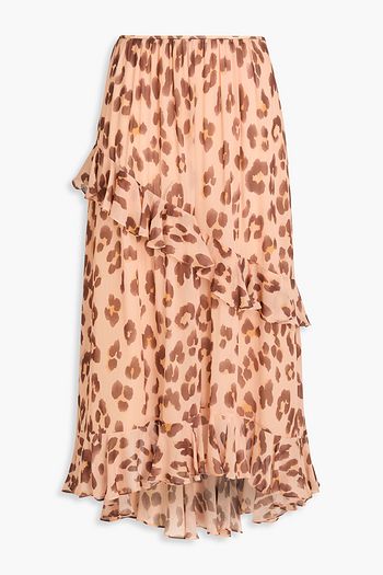 Ruffled leopard-print crepe de chine midi skirt