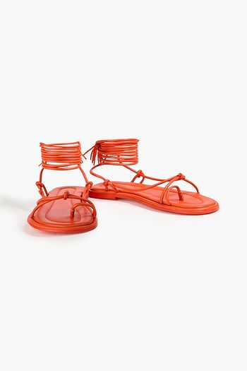 Maiolica Bianca leather-trimmed embroidered canvas slides