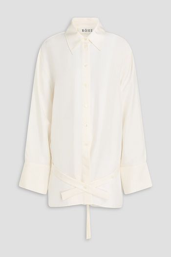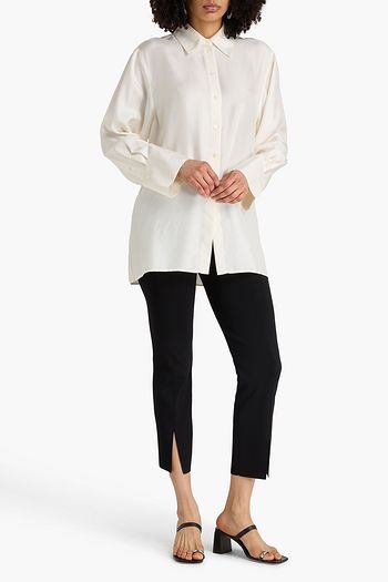Strapless draped cutout tie-dyed jersey and silk-twill top
