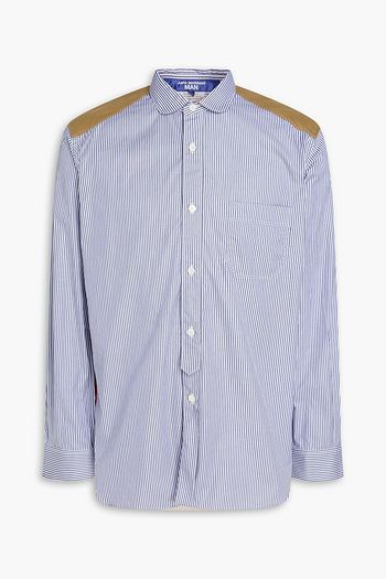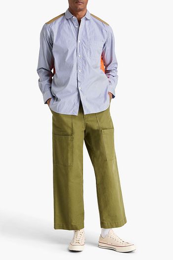 Shell-paneled striped cotton-poplin shirt