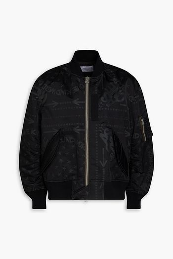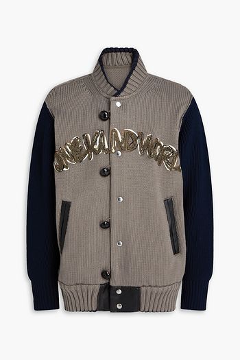 Appliquéd leather-paneled wool-blend felt bomber jacket