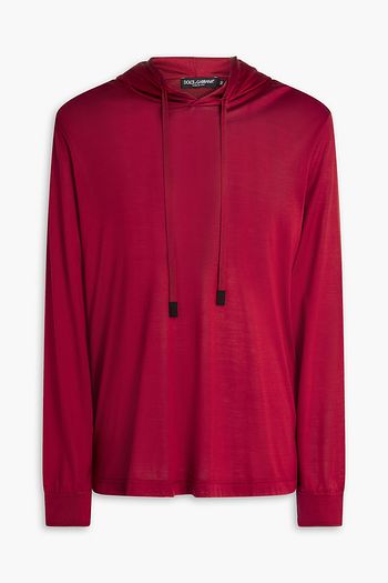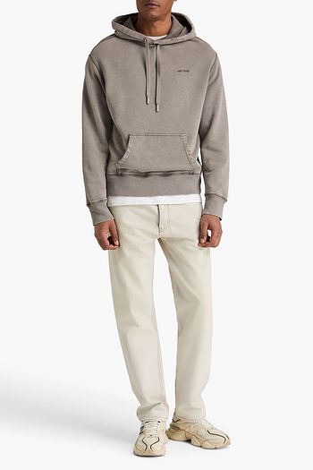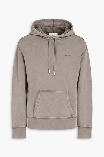 Crochet-knit and French cotton-terry zip-up sweatshirt