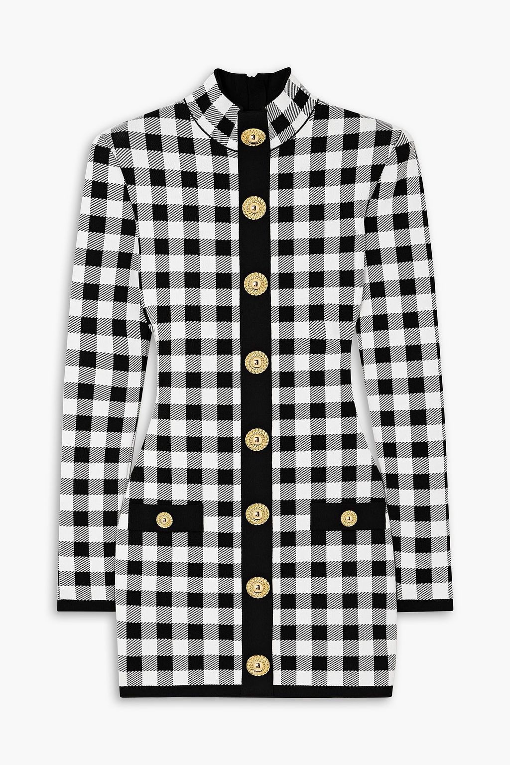 BALMAIN Button-embellished gingham jacquard-knit mini dress