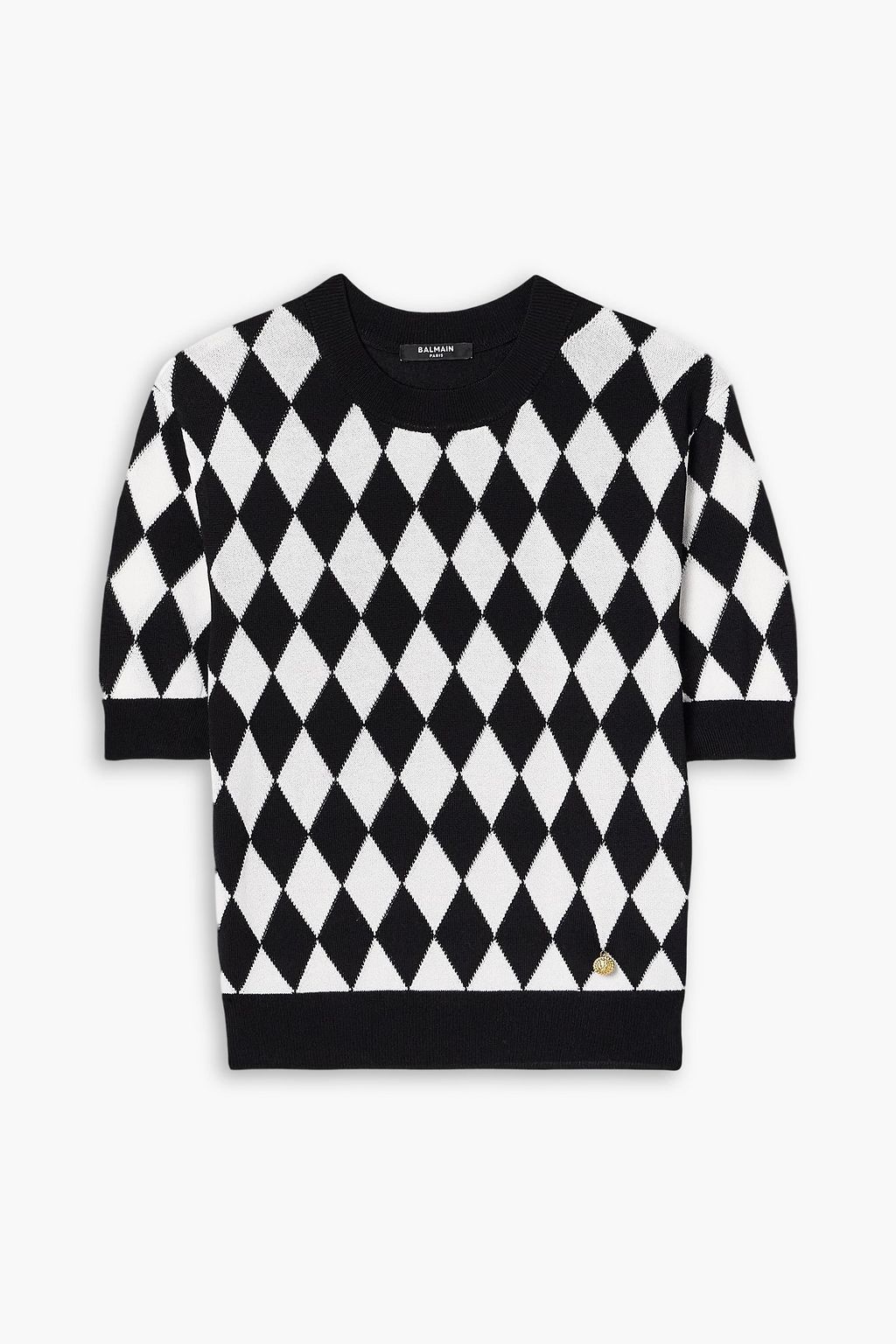 BALMAIN Embellished argyle intarsia-knit top