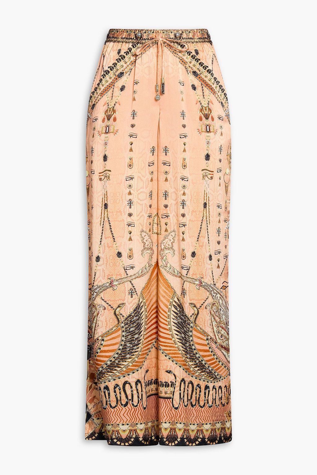 CAMILLA Printed embellished silk-satin wide-leg pants