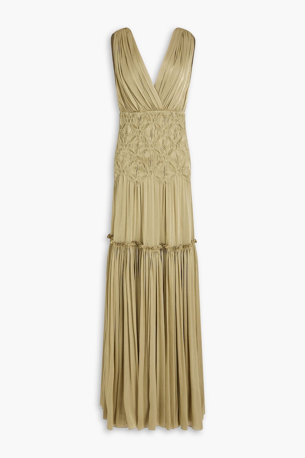 COSTARELLOS Gathered metallic georgette gown