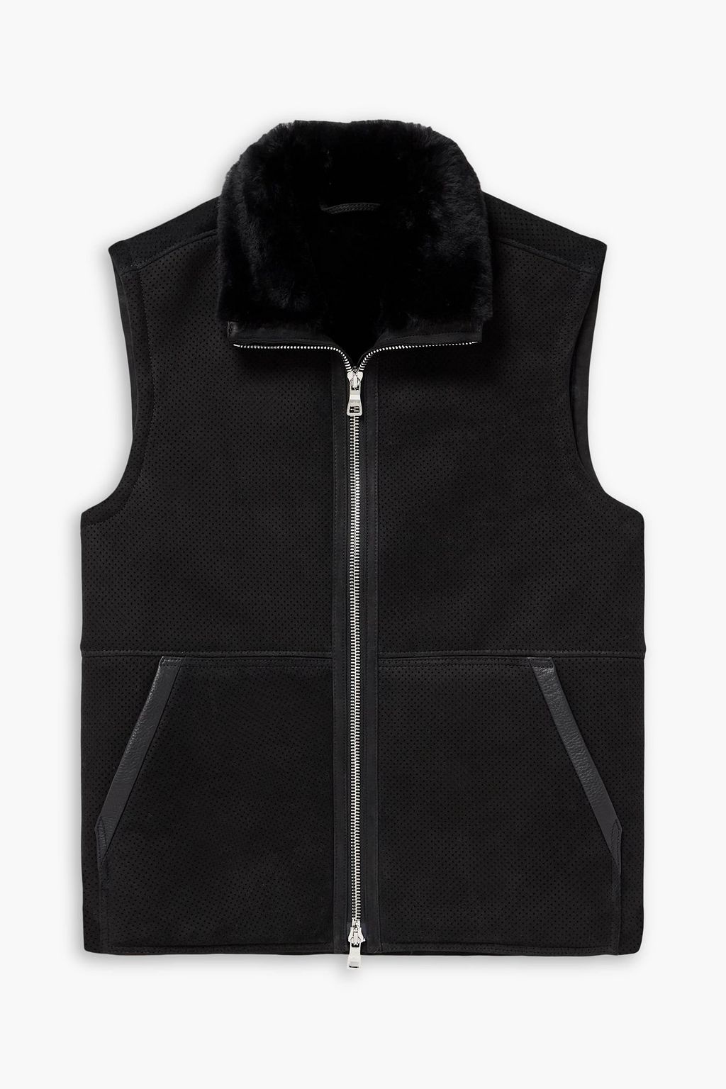 MR P. Leather-trimmed perforated shearling vest
