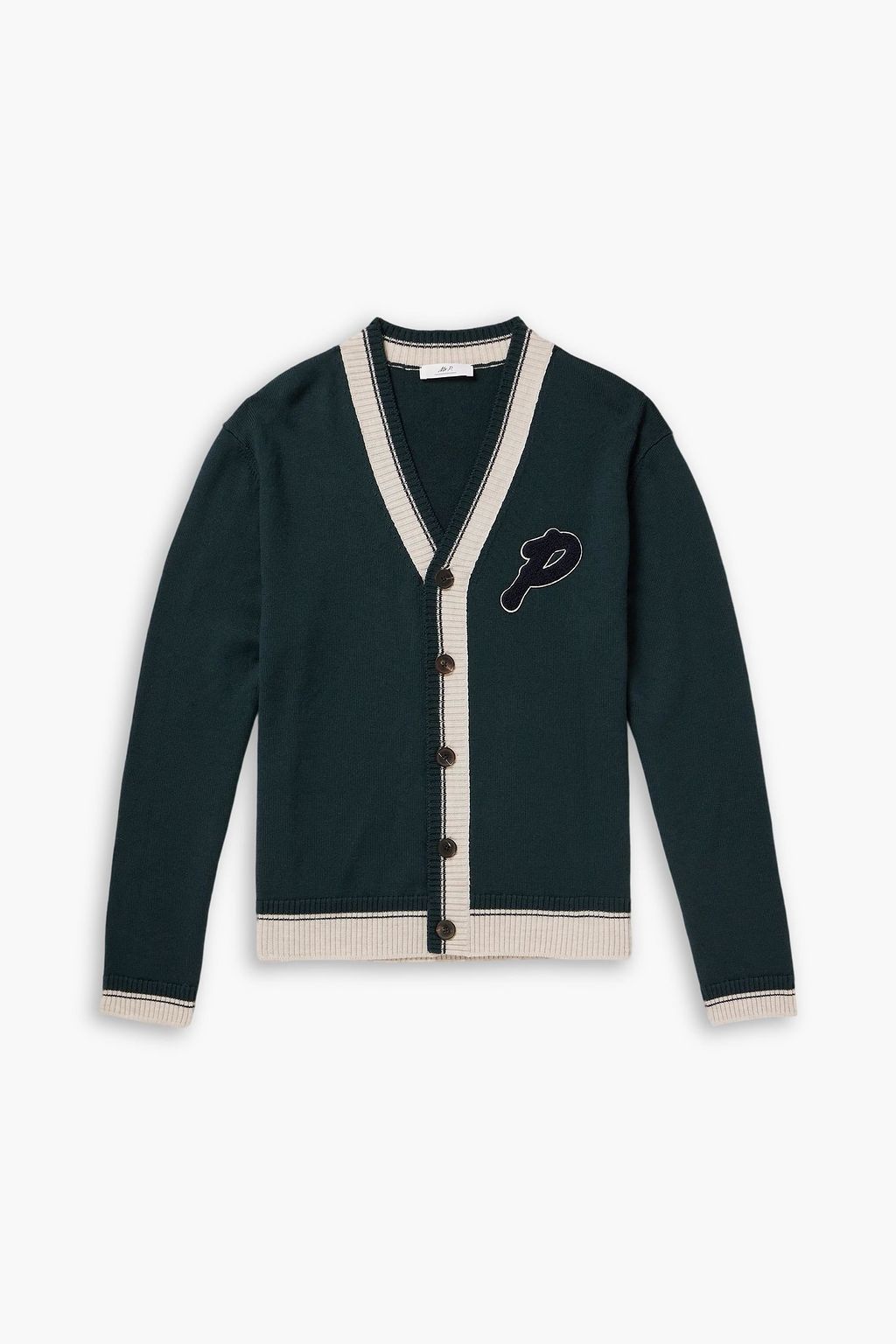 MR P. Golf logo-appliquéd striped merino wool cardigan