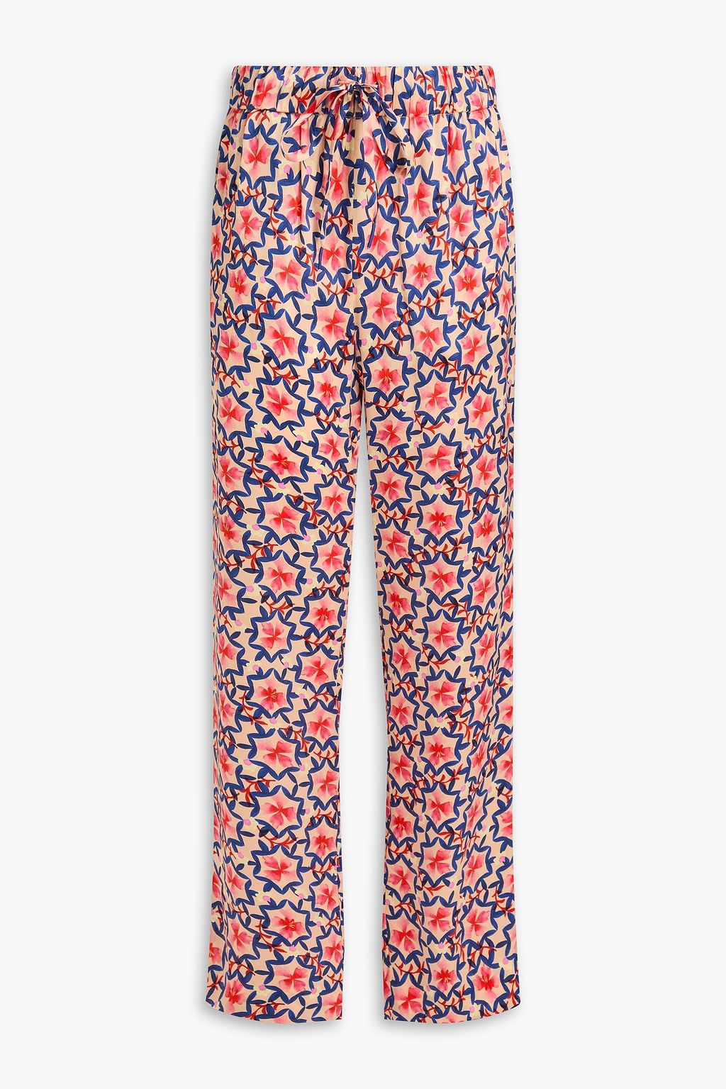 SALONI Printed silk-satin straight-leg pants