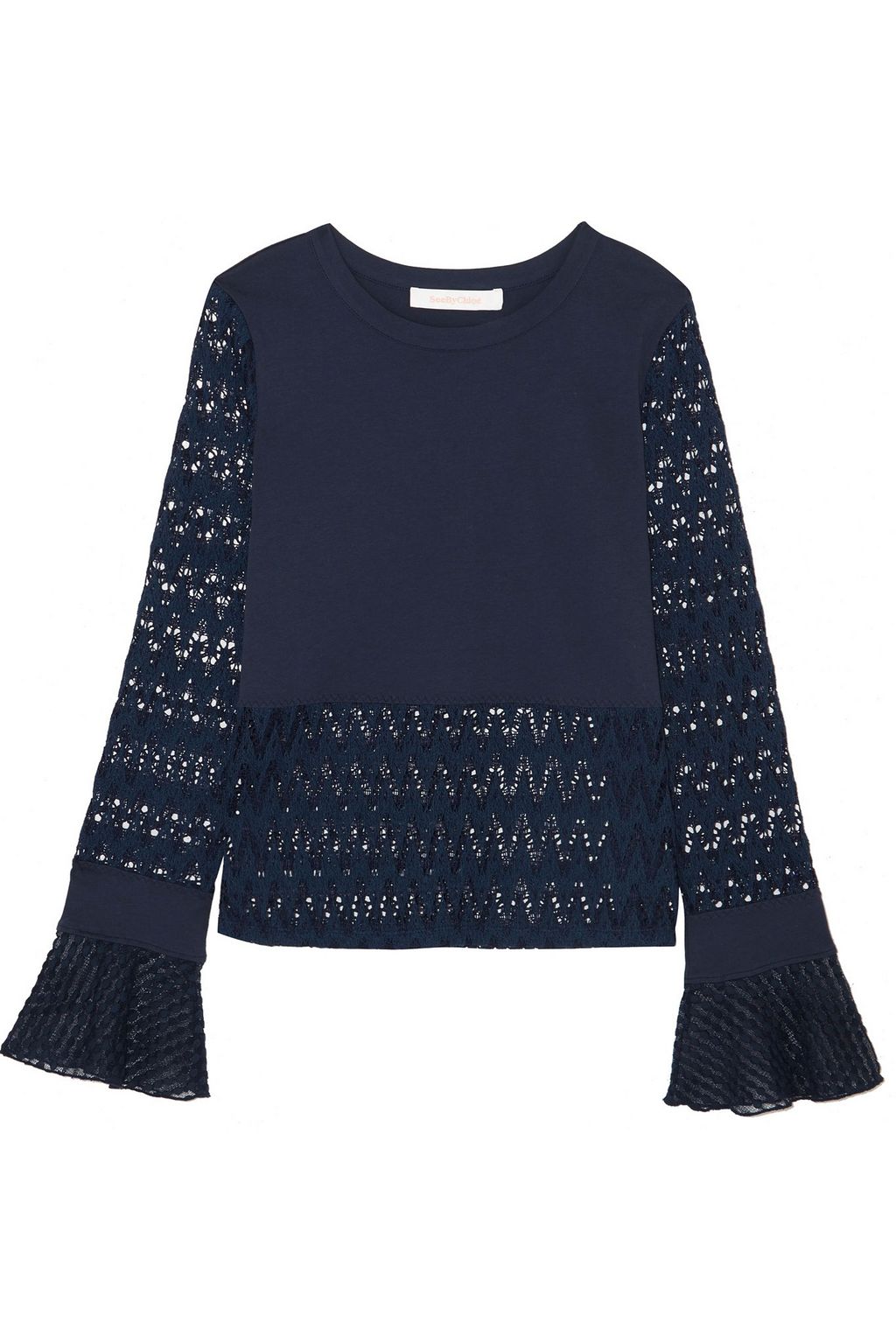 SEE BY CHLOÉ Embroidered tulle-trimmed stretch-jersey and open-knit top