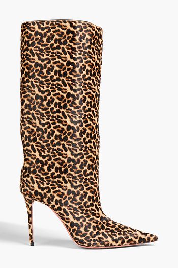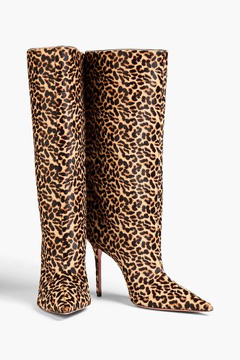 Fiona leopard-print calf-hair knee boots