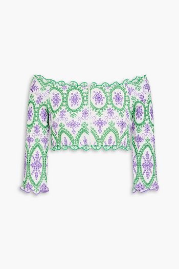 Marga off-the-shoulder cropped broderie anglaise cotton-blend top