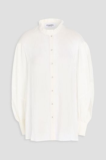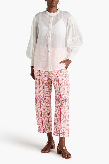 Judy cropped crochet-trimmed shirred cotton-blend voile top