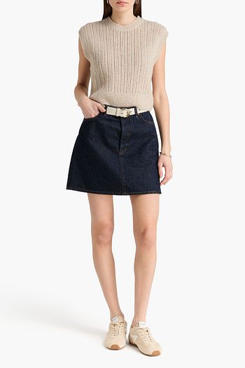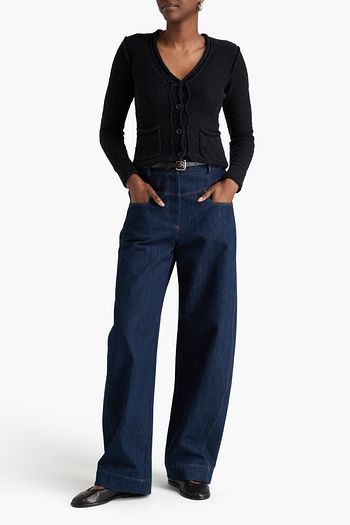 Waffle-knit cotton and cashmere-blend half-zip sweater