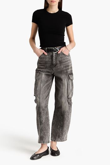 Cropped cotton-jersey T-shirt
