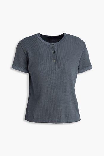 Waffle-knit cotton and linen-blend top