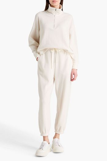Cropped waffle-knit cotton and cashmere-blend track pants