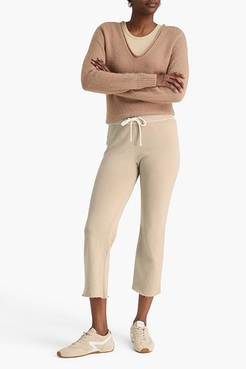 Cropped waffle-knit cotton and cashmere-blend track pants