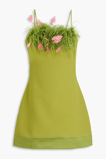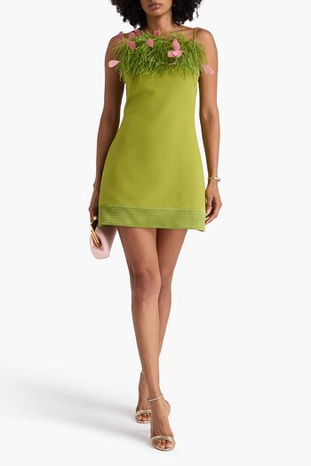 Vittoria cold-shoulder belted feather-embellished crepe midi dress