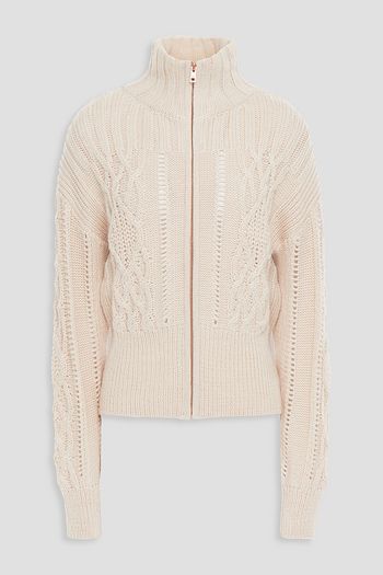 Tie-front wool and cotton-blend sweater