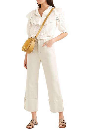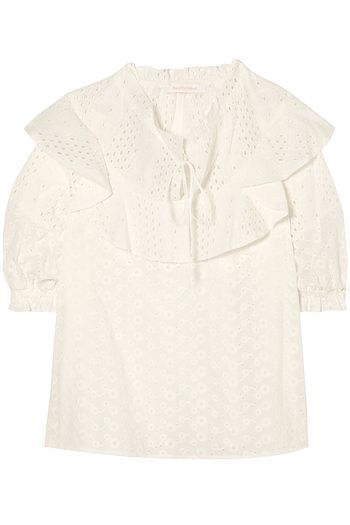 Ruffled broderie anglaise cotton blouse