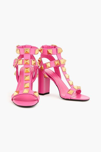 Rockstud Untitled metallic smooth and pebbled-leather platform sneakers