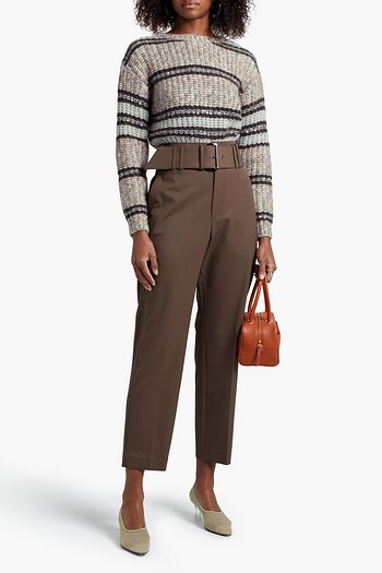 Bead-embellished ribbed cashmere turtleneck mini dress