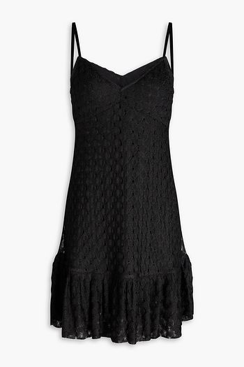Floral-appliquéd wool and silk-blend crepe mini dress