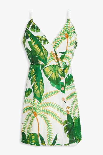 Pleated floral-print linen and silk-blend mini dress