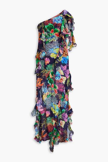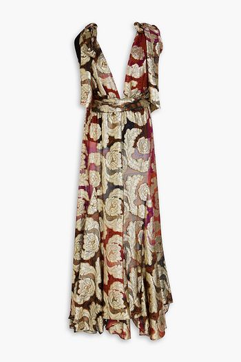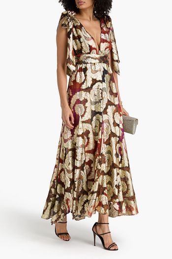 Ruffled metallic fil coupé georgette midi dress