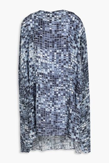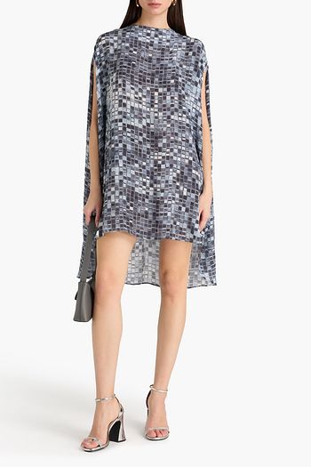 Bead-embellished printed crepe mini wrap dress