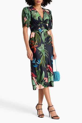 Floral-print crepe midi dress