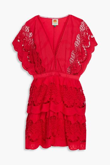 Crochet-trimmed floral-print cotton-mousseline mini dress