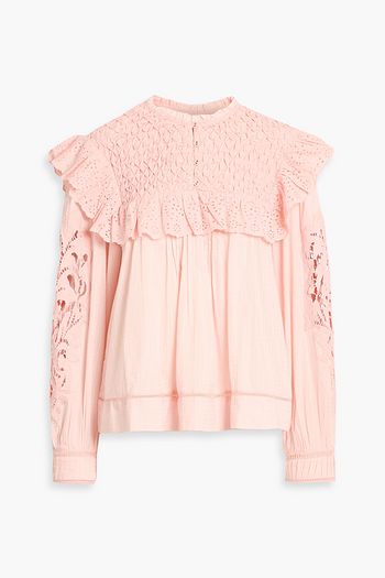 Ruffled broderie anglaise cotton blouse