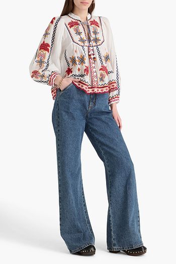 Embroidered broderie anglaise cotton blouse