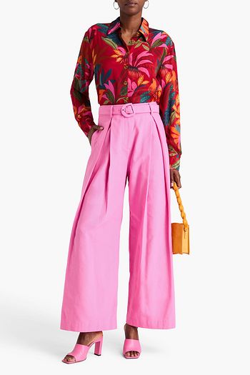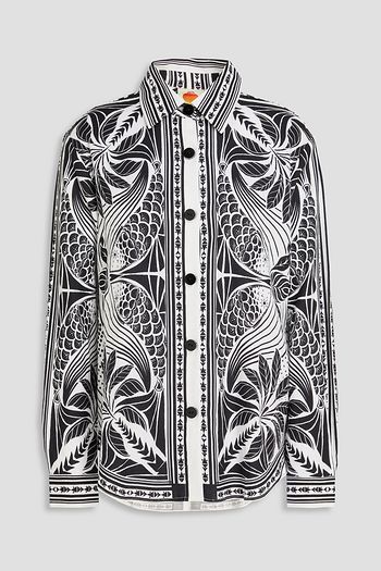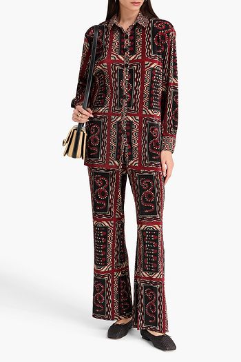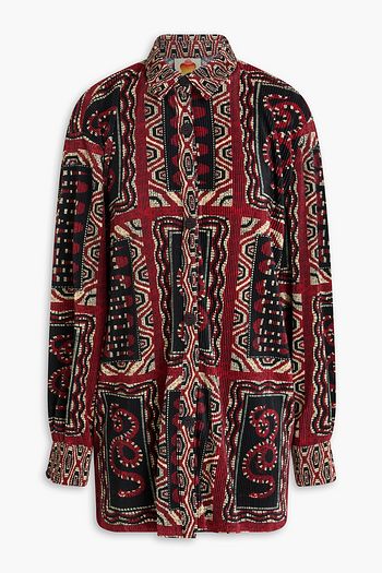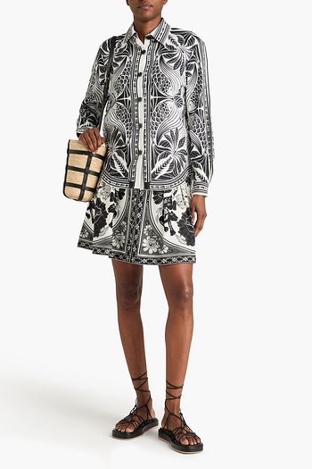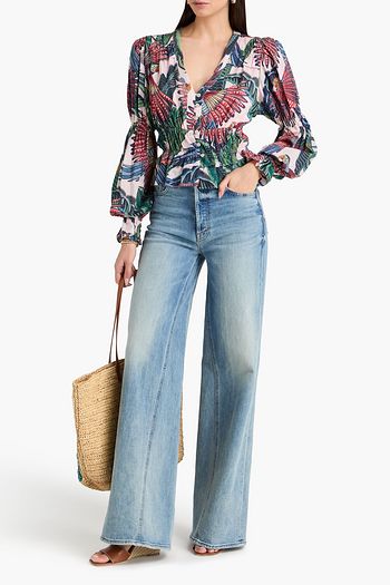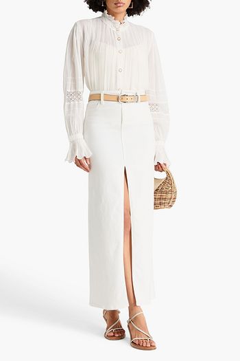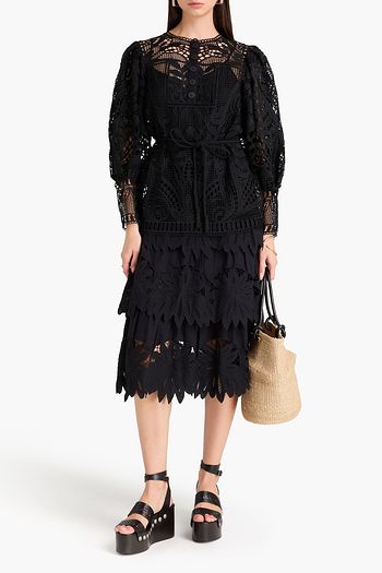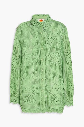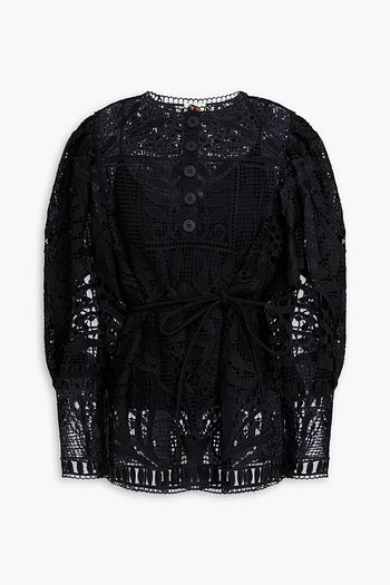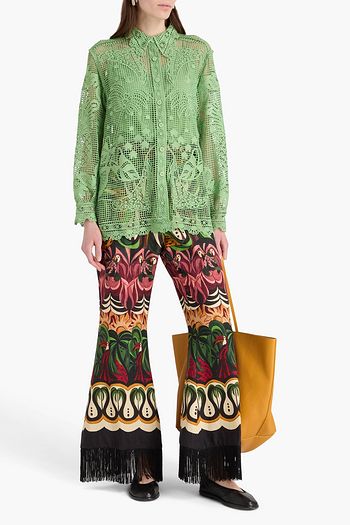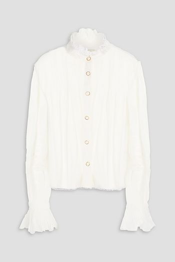 Honeycomb ruffled guipure lace and cotton-jacquard blouse