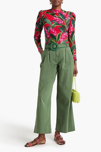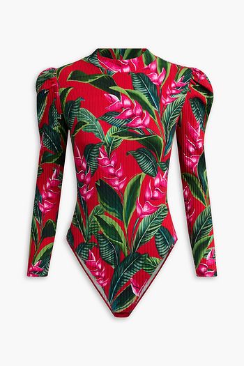 Floral-print ribbed stretch-cotton jersey turtleneck bodysuit