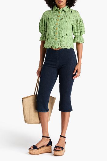 Ruffled broderie anglaise cotton blouse
