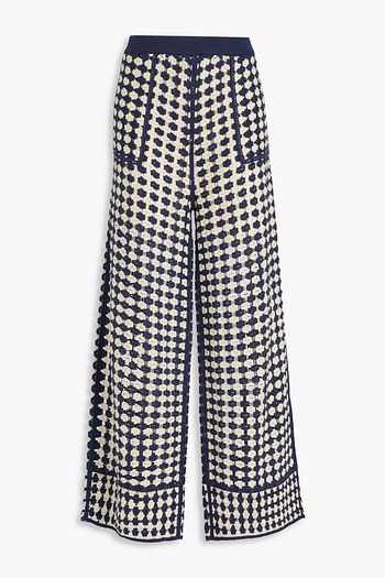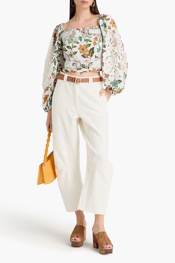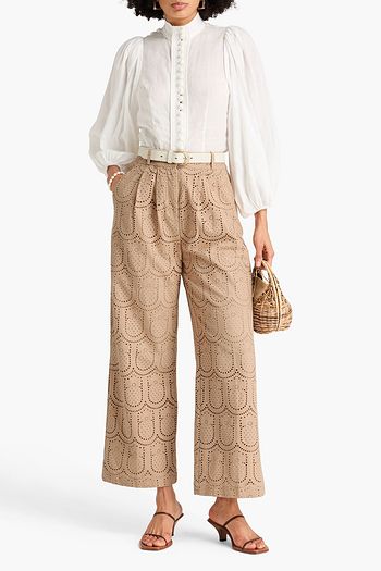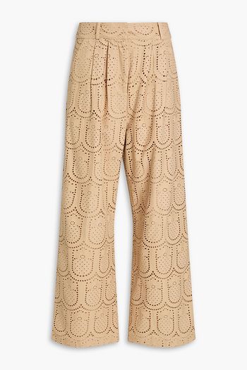 Pleated broderie anglaise cotton wide-leg pants