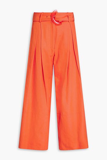 Belted Lyocell and cotton-blend wide-leg pants