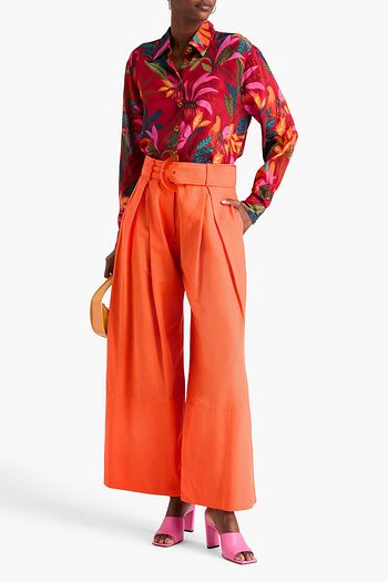 Pleated printed crepe de chine wide-leg pants