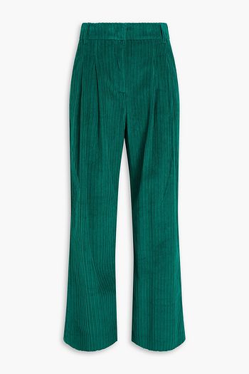 Pleated cotton-corduroy wide-leg pants