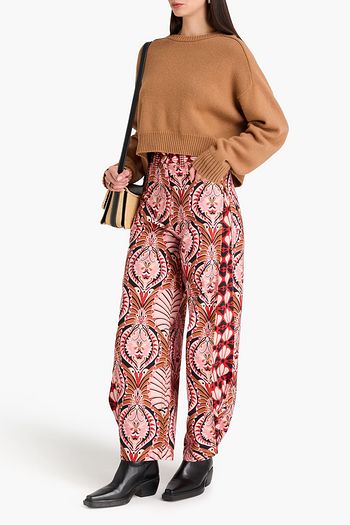 Printed satin-twill tapered pants