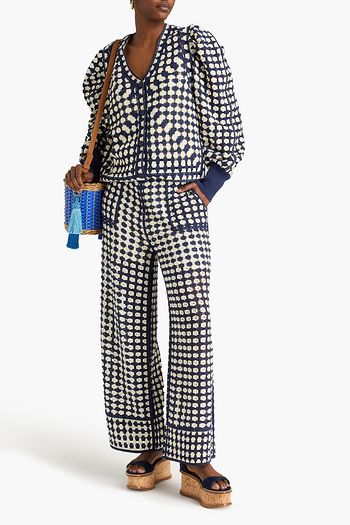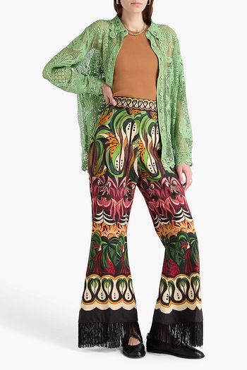 Fringed printed linen-blend flared pants